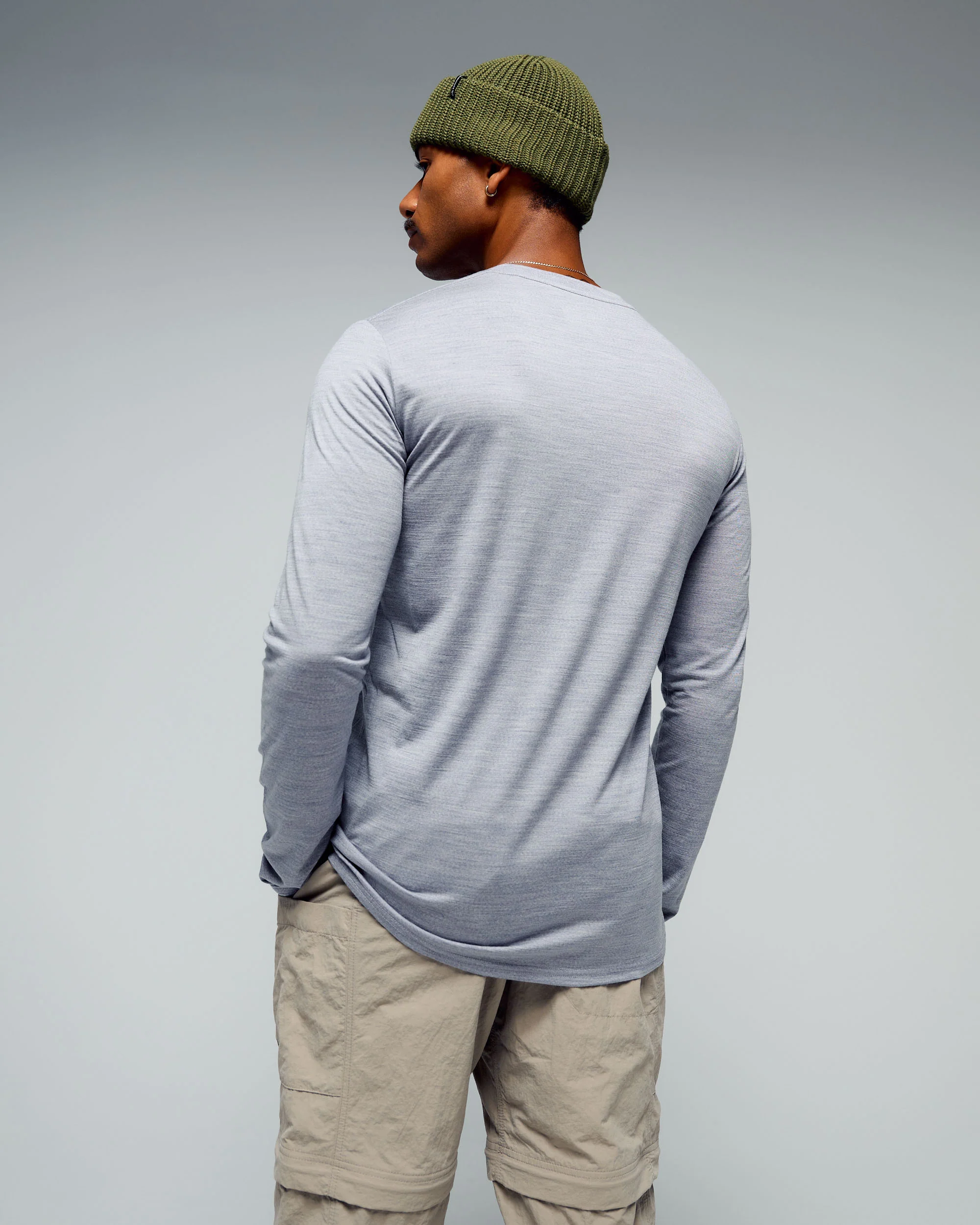 Men's 100% Merino Long Sleeve Crew Top - Mid Grey Marle